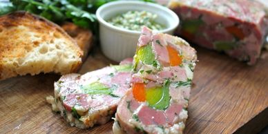 * Ham hock terrine, pickle tartar, dressed bitter greens, toasted sour dough - GFO